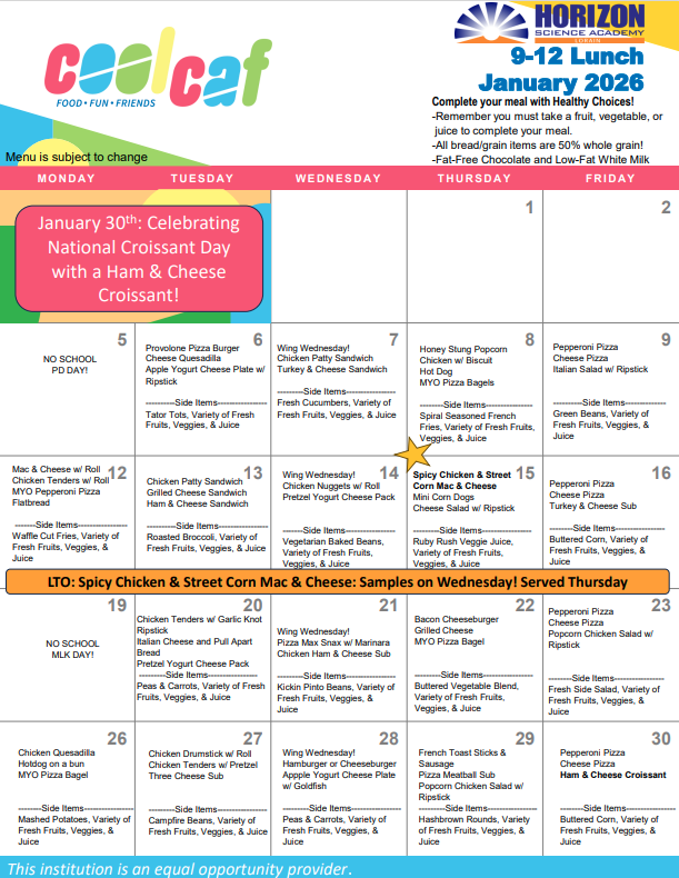 HSA 9-12 Lunch Menu January 2026