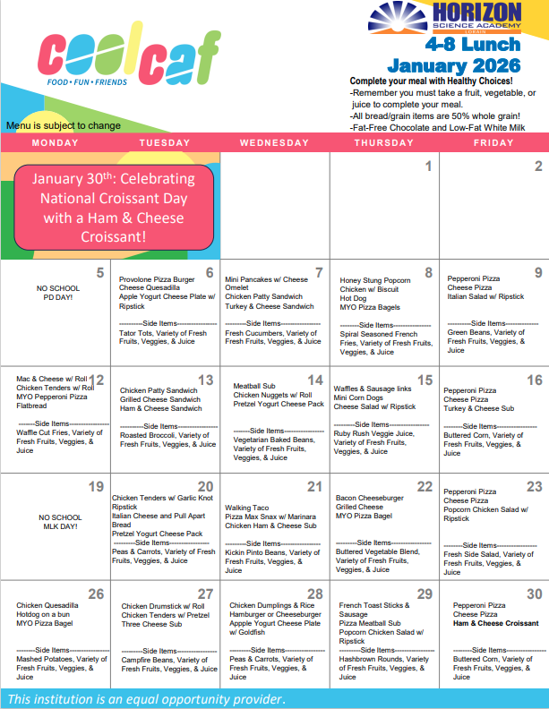 HSA 4-8 Lunch Menu January 2026